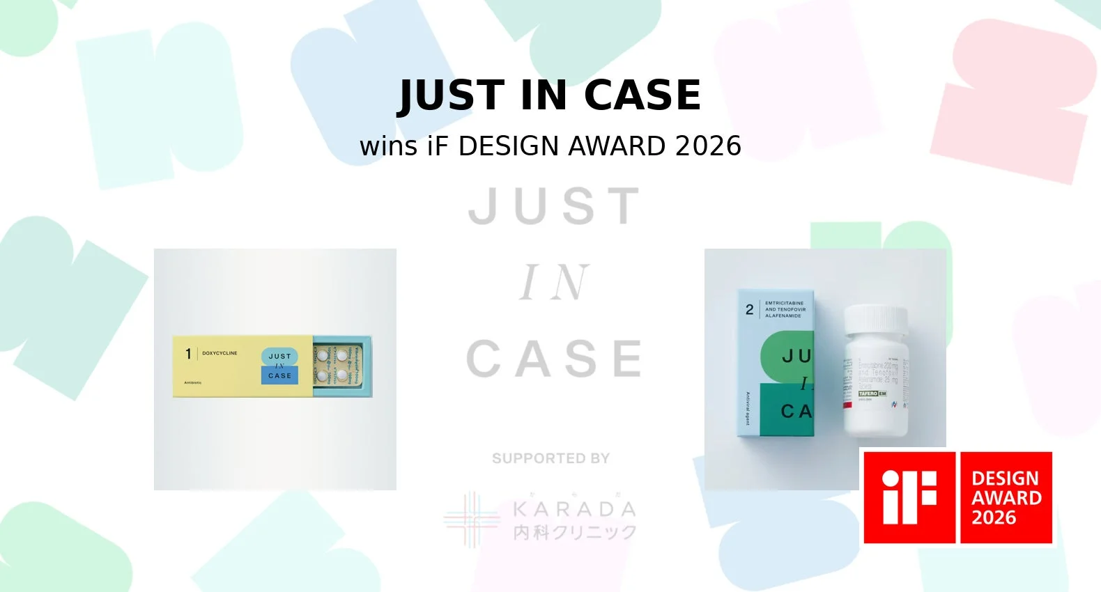「iF DESIGN AWARD 2026」には、68カ国・地域から約10,000件の応募があり、129名のデザイン専門家による厳正な審査が行われました。その中で「JUST IN CASE」は、性感染症の予防薬処方というデリケートな分野において、「話しにくい」「受診しづらい」といった心理的障壁やスティグマを低減させるためのブランド設計全体が高い評価を受けました。